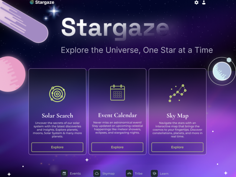 Stargaz is a mobile app created to help users plan, track, and enjoy stargazing experiences. This group project was part of our UX Design course, where we focused on creating a smooth and engaging user experience supported by a strong visual identity.
